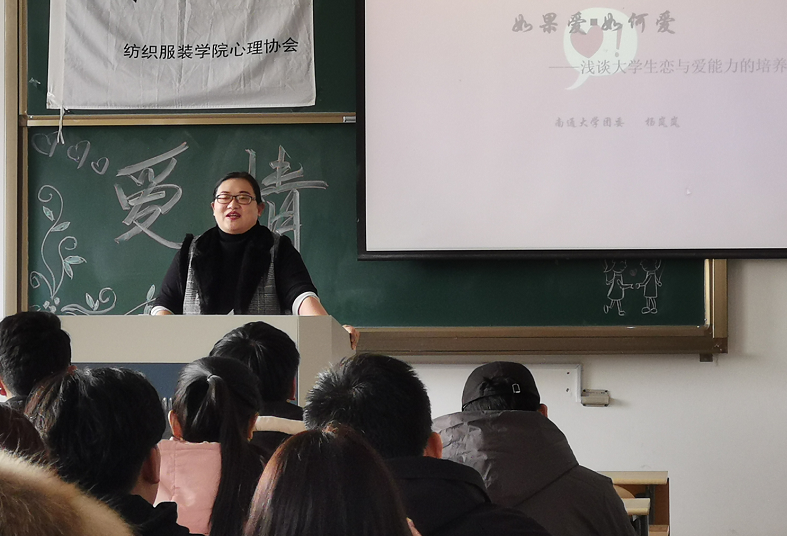 为进一步加强学生思想政治教育工作,引导大学生树立正确的恋爱观念,12月5日下午,学院邀请了校团委、国家心理咨询师杨岚岚老师为学生做《爱情花开》专题心理讲座。