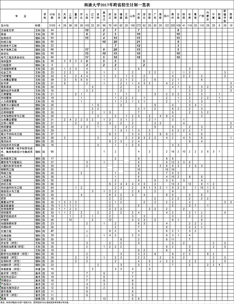 永利集团2017年跨省招生计划一览表
