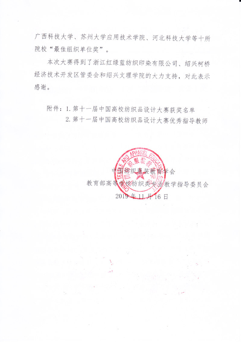 关于公布“红绿蓝杯”第十一届中国高校纺织品设计大赛结果的通知