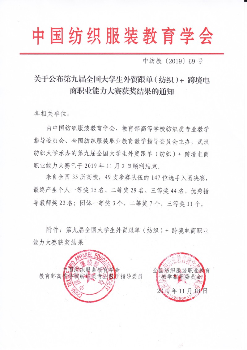 关于公布第九届全国大学生外贸跟单(纺织)+跨境电商职业能力大赛获奖结果的通知