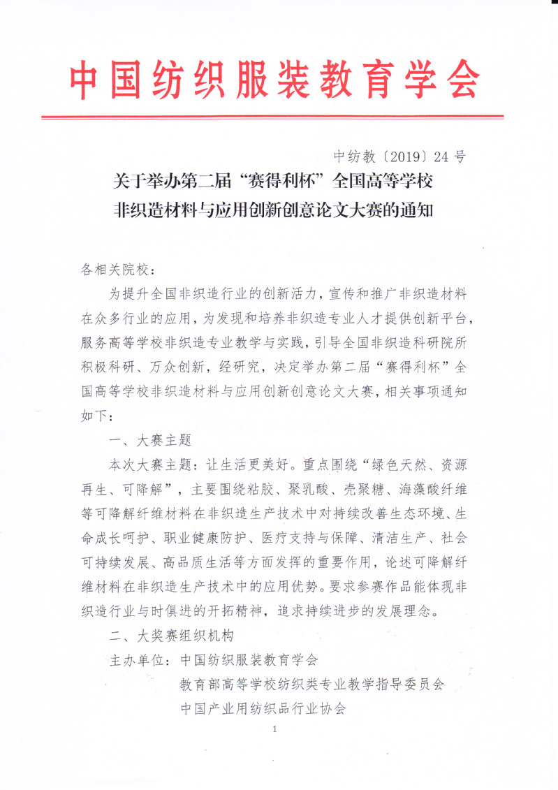 关于举办第二届“赛得利杯”全国高等学校非织造材料与应用创新创意论文大赛的通知
