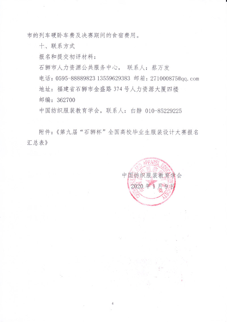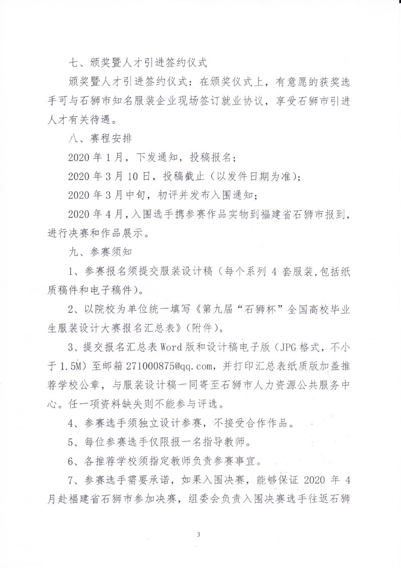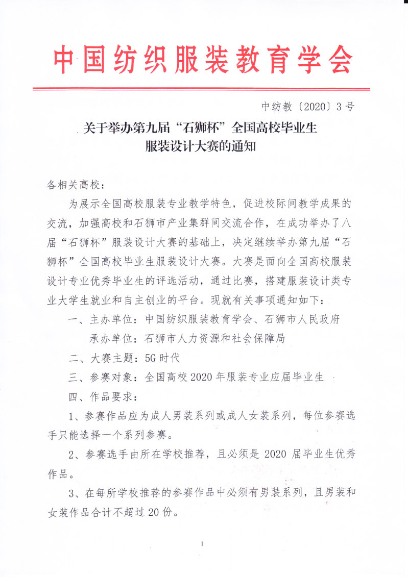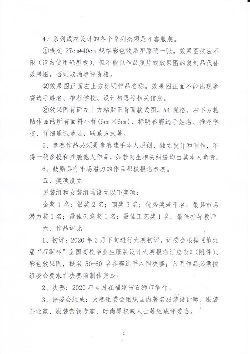 关于举办第九届“石狮杯”全国高校毕业生服装设计大赛的通知