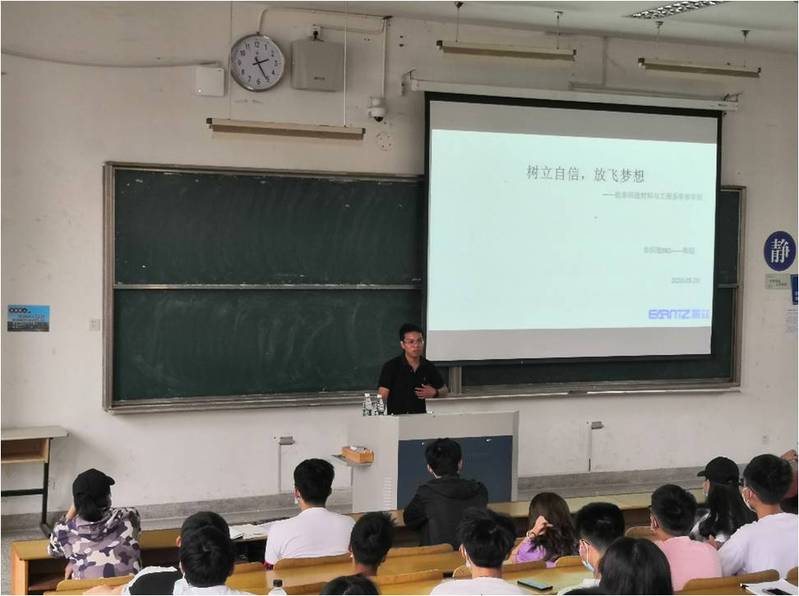 5月28日下午,我院校友会副会长、上海盈兹无纺布有限公司厂长高超先生应邀回母校,为学生举行题为《树立自信,放飞梦想——职业生涯经历分享》的讲座。近百名非织造材料与工程专业同学到场聆听。