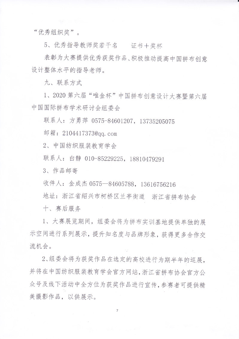 关于举办2020第六届“唯金杯”中国拼布创意设计大赛的通知
