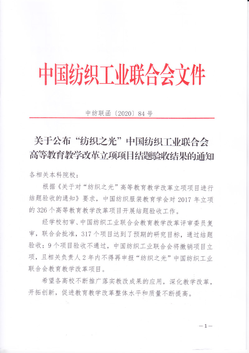 关于公布“纺织之光”中国纺织工业联合会高等教育教学改革立项项目结题验收结果的通知