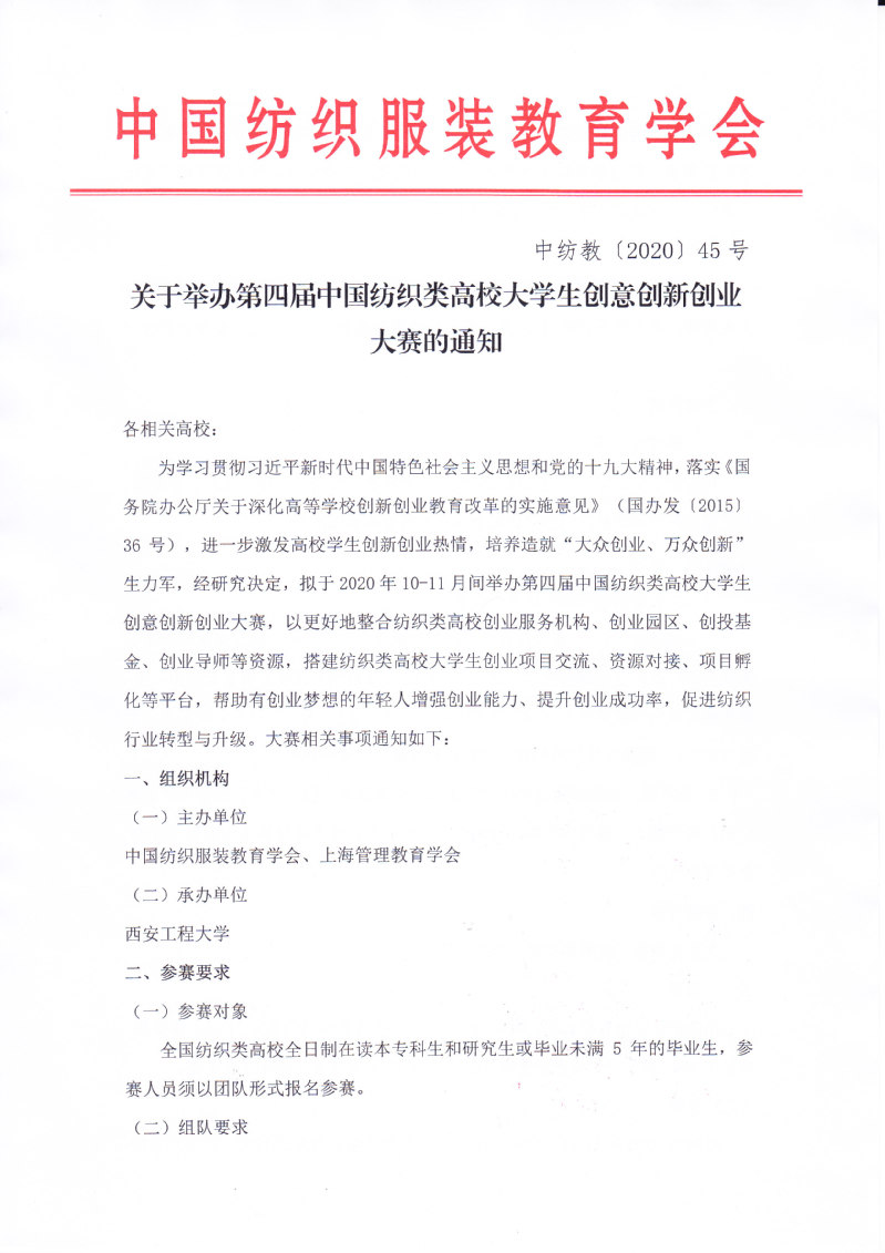 关于举办第四届中国纺织类高校大学生创意创新创业大赛的通知