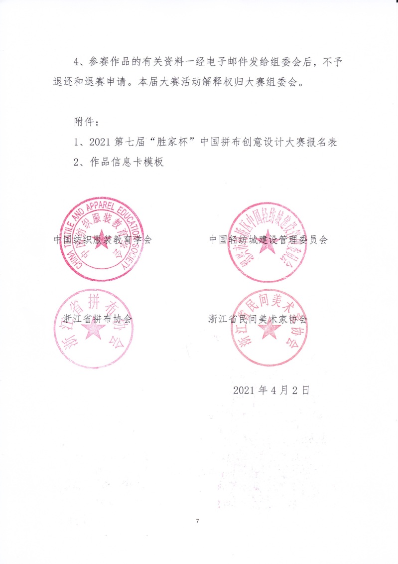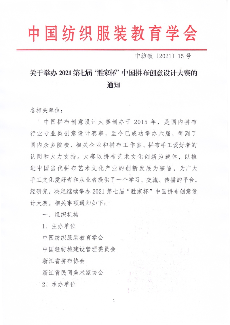 关于举办2021第七届“胜家杯”中国拼布创意设计大赛的通知