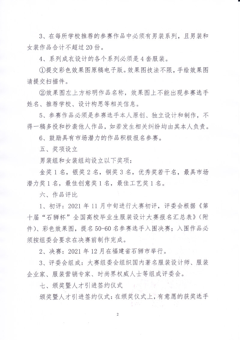 关于举办第十届“石狮杯”全国高校毕业生服装设计大赛的通知