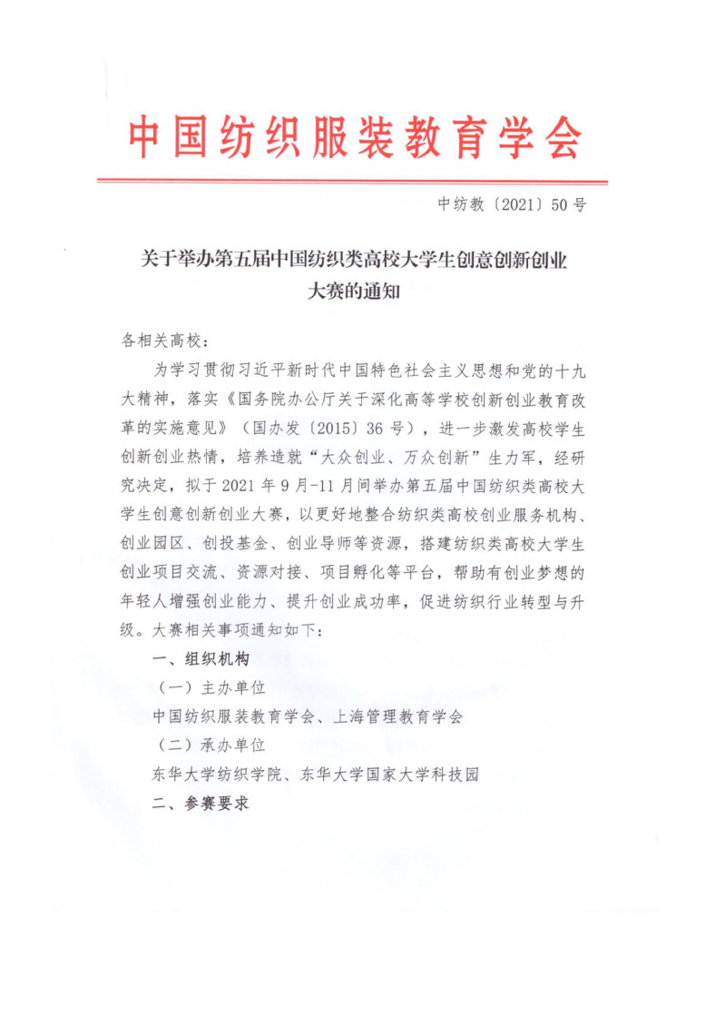 关于举办第五届中国纺织类高校大学生创意创新创业大赛的通知