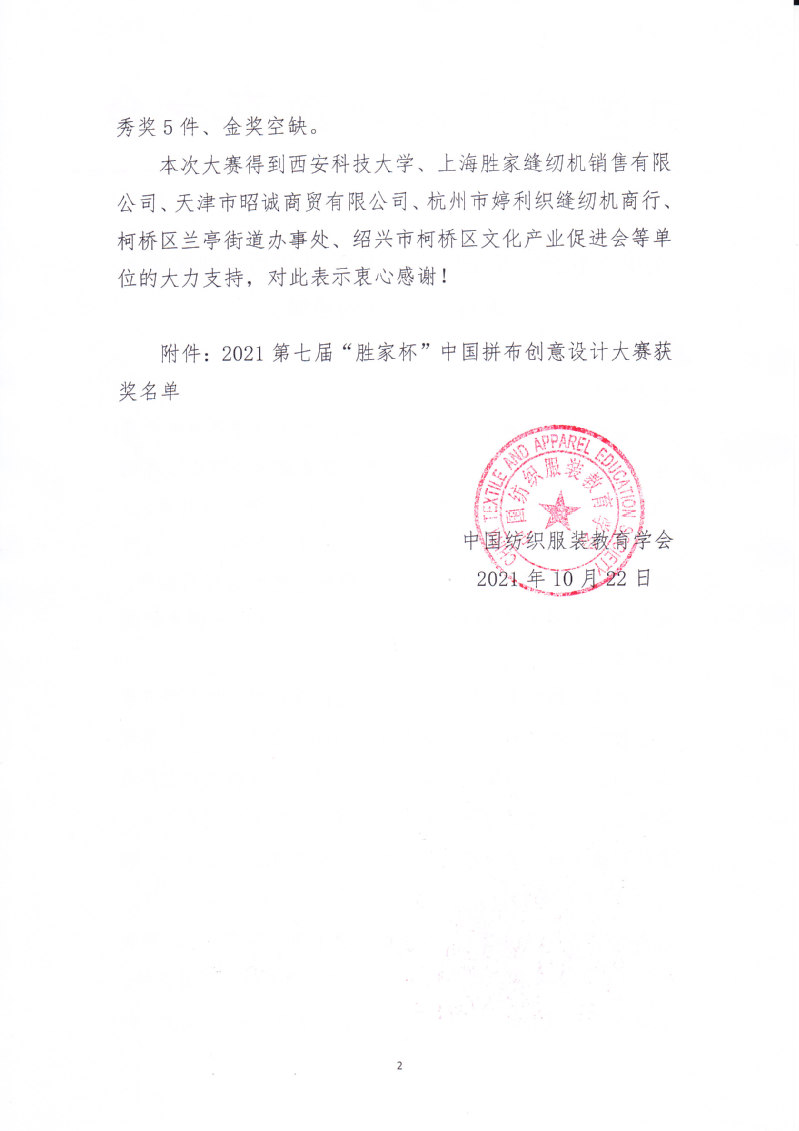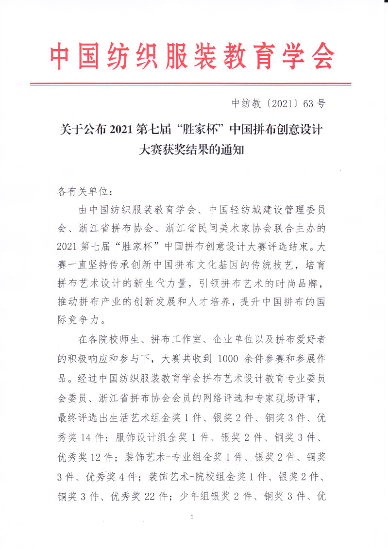 关于公布2021第七届“胜家杯”中国拼布创意设计大赛获奖结果的通知