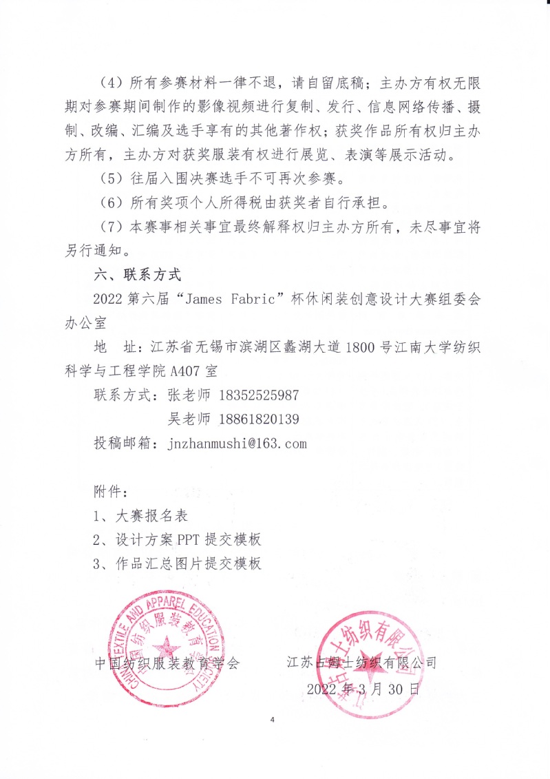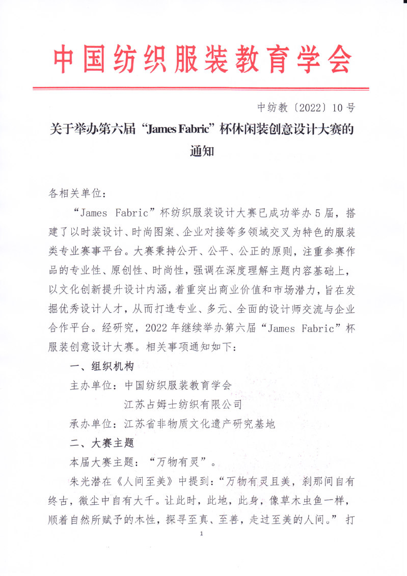 关于举办第六届“James Fabric”杯休闲装创意设计大赛的通知