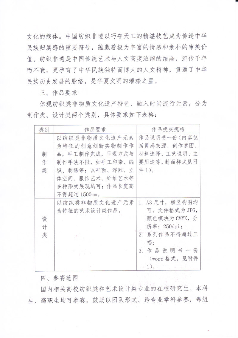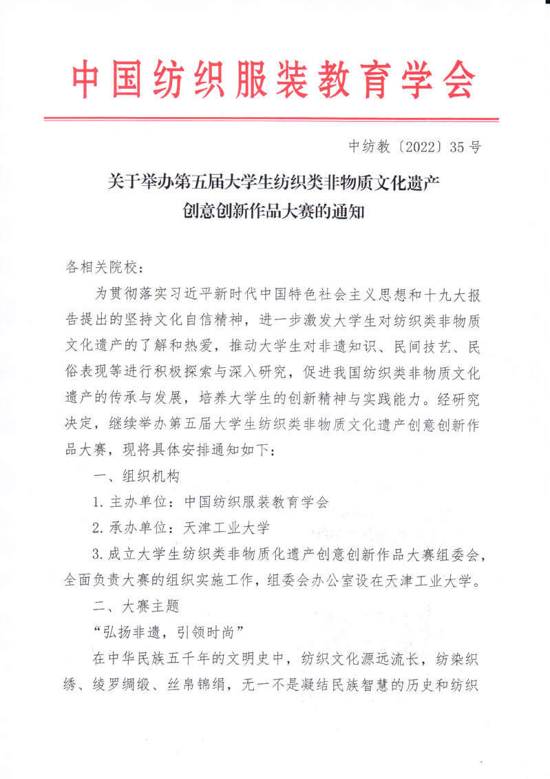 关于举办第五届大学生纺织类非物质文化遗产创意创新作品大赛的通知