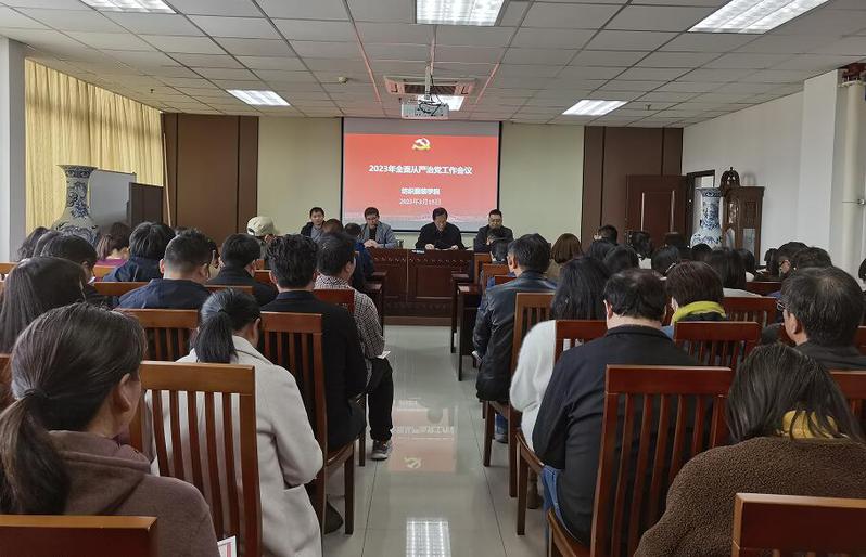 施险峰指出,今年是全面贯彻落实党的二十大精神的开局之年,是实施“十四五”事业发展规划的关键之年,也是学院申报博士点的关键之年。他强调,全体教职工要坚决贯彻全面从严治党的要求,从思想上要高度重视、脚踏实地认真学习,从行动上要抓紧落实、以高标准严格要求自己,并就学院2023年全面从严治党工作提出四点要求:一要凝聚思想共识,增强政治自觉,深入学习贯彻党的二十大精神,坚持用习近平新时代中国特色社会主义思想培根铸魂,为学院高质量发展奠定思想基础;二要强化政治建设,压实党建责任,始终把党的政治建设摆在首位,坚持不懈用党的创新理论武装头脑,努力推动真讲政治、敢讲政治、实讲政治、严讲政治在全党蔚成风气;三要强化标本兼治,提升反腐实效,压实全面从严治党和党风廉政建设的主体责任和一岗双责,在安全稳定、意识形态、师德师风和干部廉洁自律等工作中坚定做到“零”问题;四要增强党建活力,夯实工作实效,积极推进“一支部一品牌”创建工作,发挥党建品牌的辐射和示范带动作用,促进永利集团、科研能力、人才培养、社会服务等方面再上新台阶。