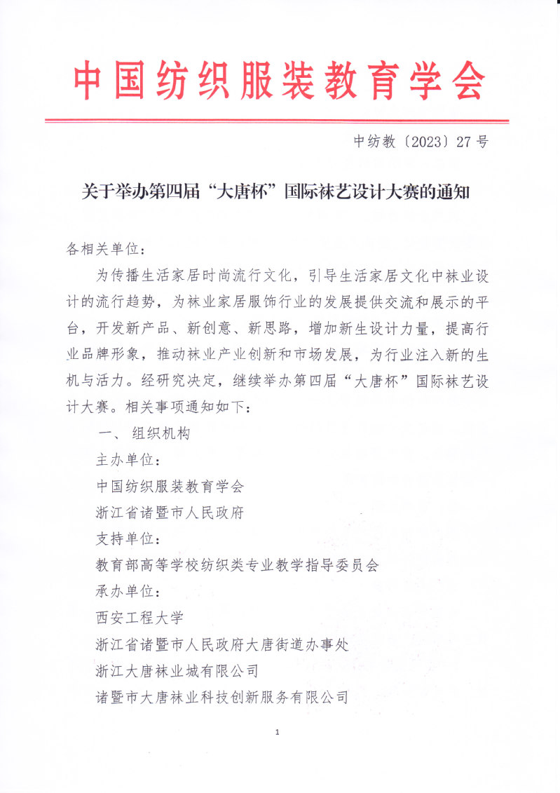 关于举办第四届“大唐杯”国际袜艺设计大赛的通知