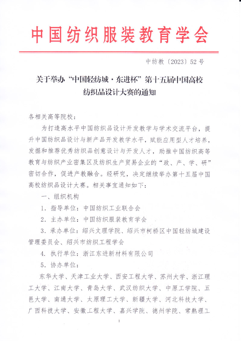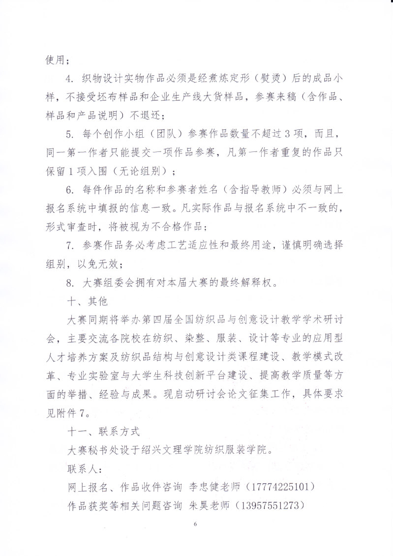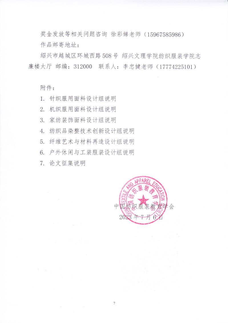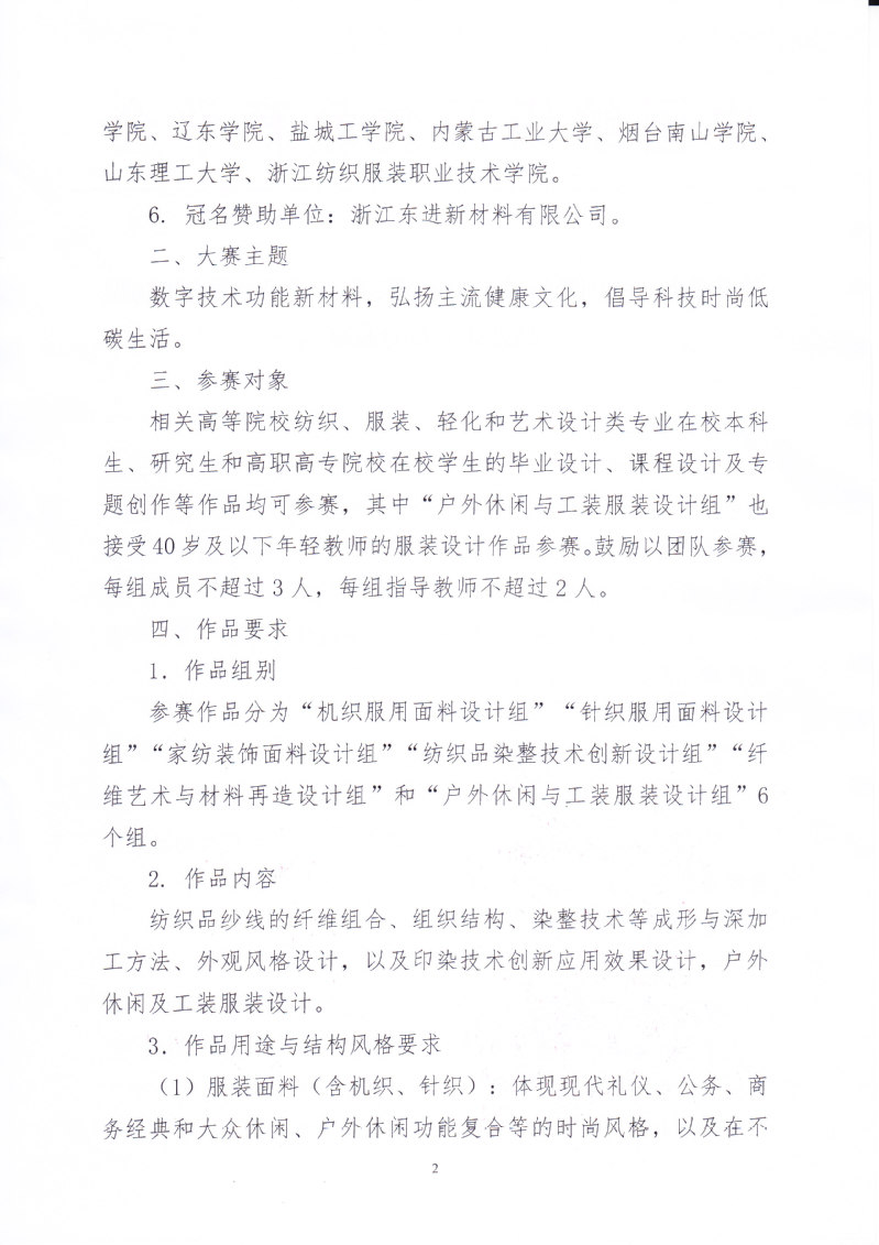 附件1:针织服用面料设计组说明.docx附件2:机织服用面料设计组说明.docx附件3:家纺装饰面料设计组说明.docx附件4:纺织品染整技术创新设计组说明.docx附件5:纤维艺术与材料再造设计组说明.docx附件6:户外休闲与工装服装设计组参赛说明.docx附件7:论文征集说明.docx