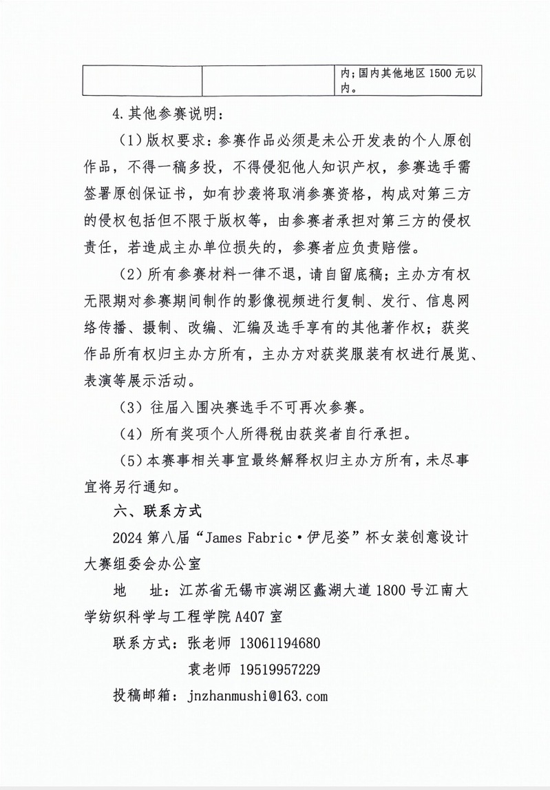 关于举办第八届“James Fabric·伊尼姿”杯女装创意设计大赛的通知