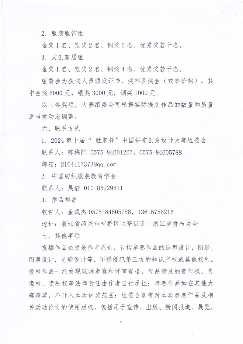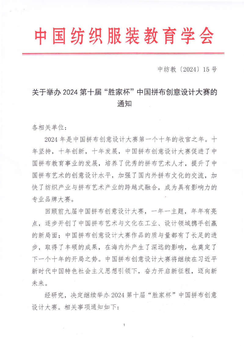 关于举办2024第十届“胜家杯”中国拼布创意设计大赛的通知