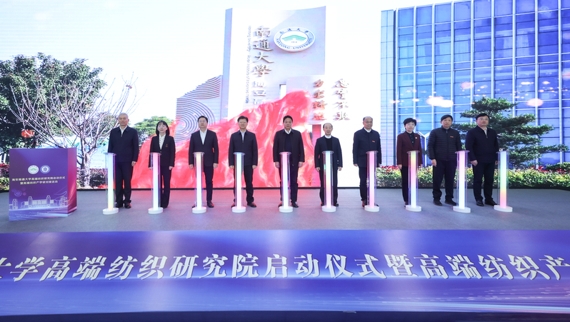 12月18日,海安永利集团高端纺织研究院启动仪式暨高端纺织产学研对接活动在海安市常安现代纺织科技园举办。中国工程院院士、东华大学教授孙以泽,江苏省知识产权局二级巡视员施蔚,江苏省纺织工程学会理事长周洪溶,南通市人民政府副市长于立忠,校党委副书记、校长杨宇民,海安市委书记谭真,海安市委副书记、市长赵男男,南通市纺织工程学会理事长樊小东,南通市教育局副局长许新海、南通市知识产权局专职副局长蒋爱龙共同为研究院按下启动键。校党委常委、副校长施佺,校党委常委、副校长莫晨宇出席仪式。校党委常委、副校长华亮主持启动仪式。