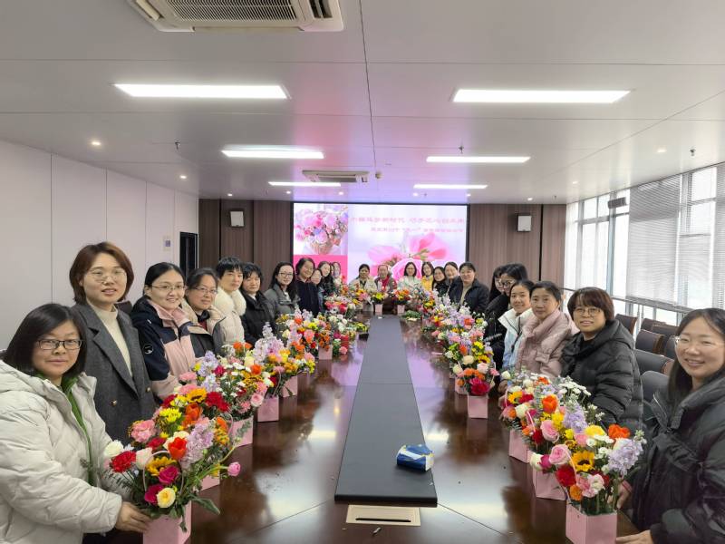 活动吸引了众多女教职工热情参与,在芬芳花香中,大家共同度过了一段温馨且富有创意的美好时光。整个活动现场充满了欢声笑语,女教职工们相互交流插花心得,分享生活趣事,彼此欣赏着各自的作品。在花香与欢笑声中,大家不仅掌握了插花技巧,更在创作过程中舒缓了工作压力,放松了心情。