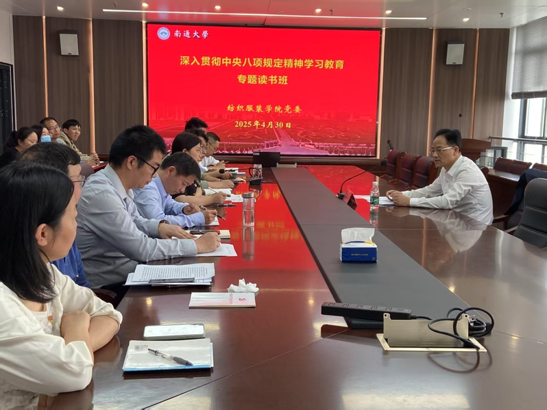 会上,学院副院长沈岳领学《习近平关于加强党的作风建设论述摘编》第三专题“作风问题核心是党同人民群众的关系问题”,高端纺织研究院执行院长陆洪彬领学第四专题“中央八项规定是改进作风的切入口和动员令,是长期有效的铁规矩、硬杠杠”,并结合学院工作实际作重点发言。