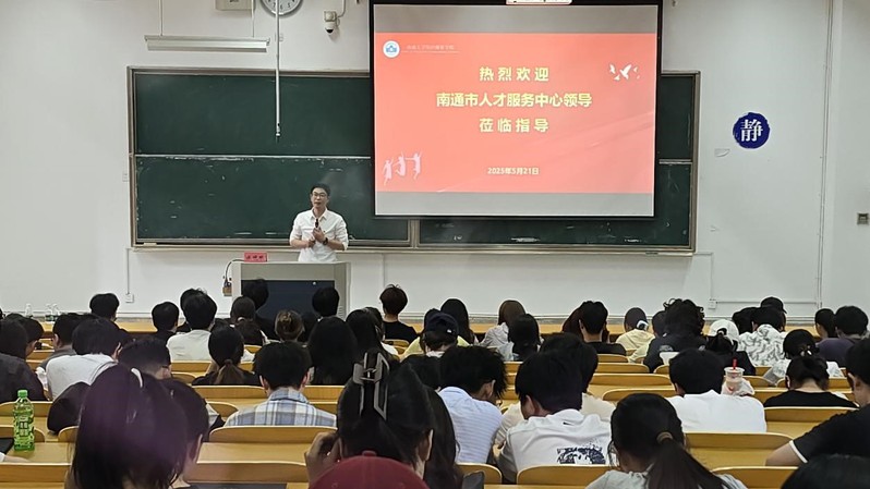 报告中,施晓球围绕当前毕业生就业问题,从三个方面进行了系统且深入的讲解。一是剖析当前的就业形势,让同学们对整体就业环境有清晰的认知;二是介绍南通的产业结构,使毕业生了解南通市产业特点和未来发展方向;三是解读南通的人才政策,为毕业生在南通就业提供政策指引。此外,施晓球还结合自己多年工作的经验,在就业观、择业观等方面对毕业生进行了指导。