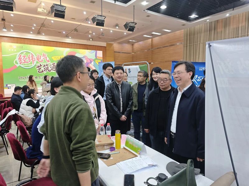 为进一步贯彻落实党中央、国务院关于高校毕业生就业工作的决策部署,抢抓春季促就业攻坚行动关键期,4月14日下午,永利3044集团携手电气与自动化学院、艺术学院(建筑学院)、交通与土木工程学院(交通学院)在啬园校区大学生活动中心成功举办“经纬电气 艺筑通途”2026届毕业生春季专场招聘会。校党委常委、副校长施佺亲临招聘会现场调研指导。